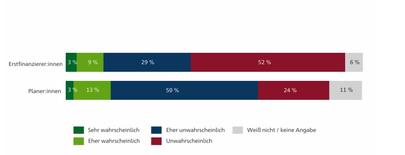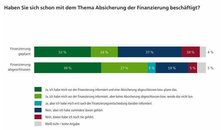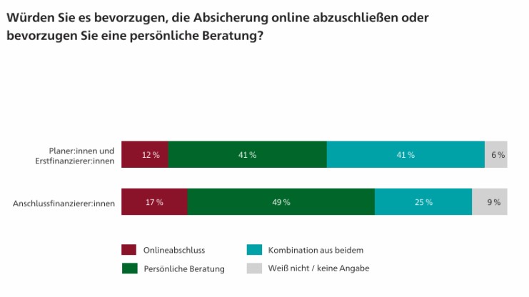 Hinzu kommt ein Informationsproblem: 51 Prozent der Befragten haben sich vor Abschluss noch gar nicht mit Risikoschutz beschäftigt, 29 Prozent selbst danach nicht. Die Studie spricht von einer „offensichtlichen Informationslücke“ in der Beratung. Nur gut ein Drittel der Planer:innen erinnert sich daran, überhaupt auf Absicherungslösungen angesprochen worden zu sein.
