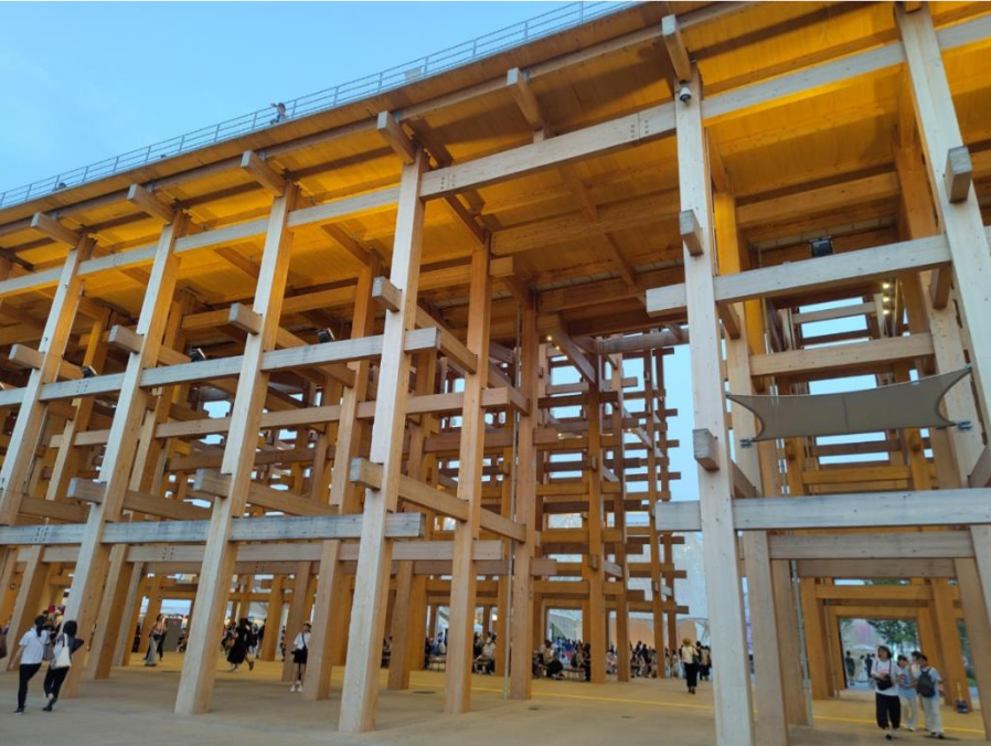 Abb. 2: Modulare Holzkonstruktion „Wa“ auf der EXPO 2025 in Osaka (Japan) (Foto: © eco2050 Institut für Nachhaltigkeit, 2025)