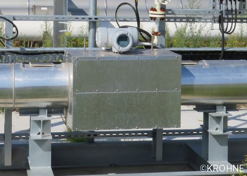 Ultraschall-Gasdurchflussmessgerät ALTOSONIC V12 von KROHNE in der Messstrecke