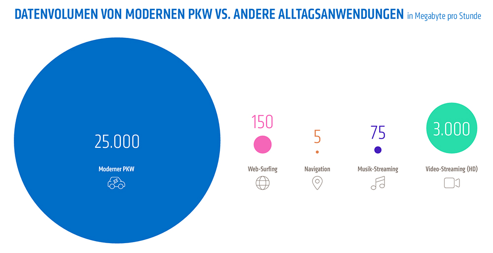 Aktuelle Fahrzeugmodelle sammeln und teilen kontinuierlich eine enorme Menge an Kundendaten. Laut Verband der Automobilindustrie (VDA) erzeugen moderne Fahrzeuge stündlich etwas 25 Gigabyte Datenmaterial. Dieses reicht von technischen Daten wie dem Verbrauch, Reifendruck und dem Zustand der Batterie eines E-Fahrzeugs bis hin zu nutzungszentrierten Daten wie Position und individueller Fahrweise.