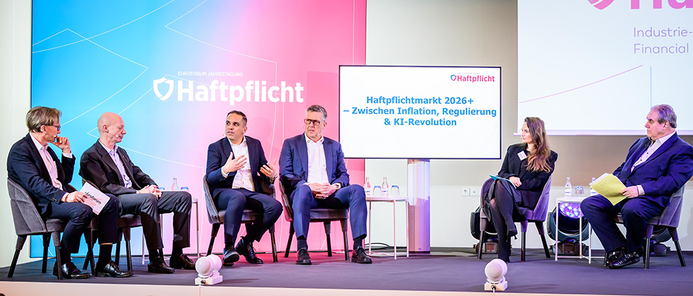Director – Swiss Re Europe Niederlassung DeutschlandEuroforum Jahrestagung Haftpflicht 2026Euroforum Jahrestagung Haftpflicht 2026, im Bild v.l. Benedikt Hintze
