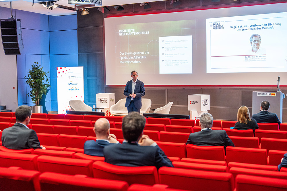 Das Gipfeltreffen der Weltmarktführer bietet die perfekte Plattform für führende Unternehmen aus dem Mittelstand – die optimale Bühne also für ein neues Format: Die CFO SUITE 2025. Parallel zum ersten Veranstaltungstag des Gipfeltreffens der Weltmarktführer am 5.02.2025 bringen wir in Schwäbisch Hall die wichtigsten CFOs aus dem Mittelstand in dem neuen Side-Events zusammen. Genießen Sie anschließend gemeinsam mit allen Teilnehmern und Teilnehmerinnen des Gipfeltreffens den Gala-Abend im Camen-Würth-Forum sowie den zweiten Veranstaltungstag des Gipfeltreffens der Weltmarktführer.