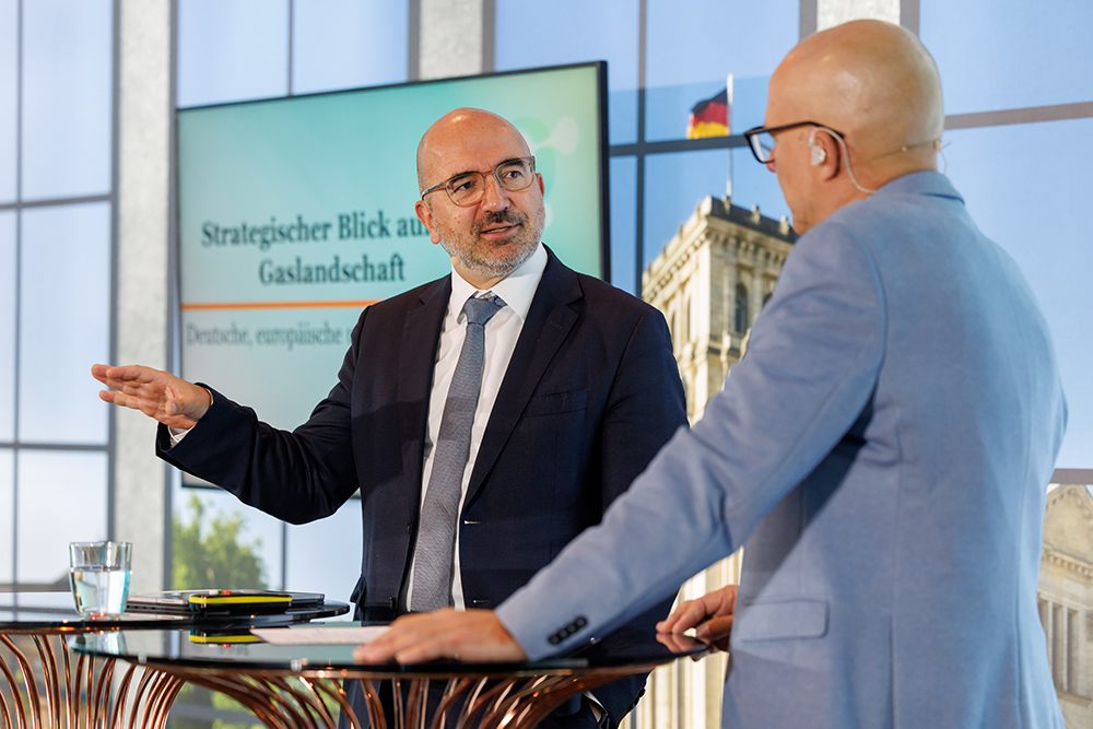 Auf dem Podium von links: Dr. Heiko Lohmann, Journalist – Berlin + Hamead Ahrary, Chief Sales Officer (CSO), SEFE – Geschäftsführer der SEFE Energy GmbH.