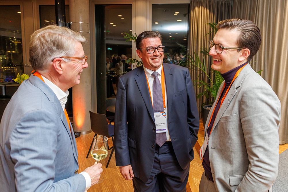 von links: Dr. Justus Wolff, – Mitglied Focus Group AI, Europäische Union Mitglied ISPOR (The Professional Society for Health Economics and Outcomes Research); Dr. Steffen Meyer, Staatssekretär im Bundesministerium der Finanzen; Dr. Daniel Steiners, Vorstand – Roche Pharma AG.