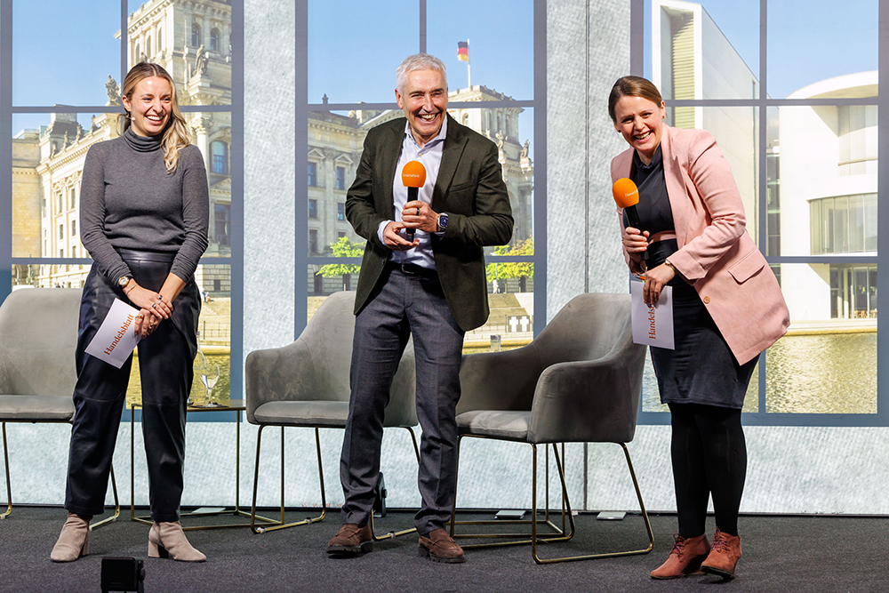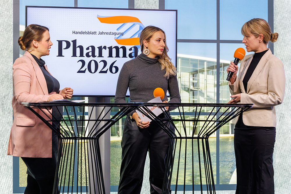 <aplaHelena Smolak, Redakteurin Pharma – Handelsblatt; Dr. Gerd Wirtz, Moderator, Experte für Zukunftsmedizin, Wissenschaftsjournalist und Buchautor; Sandra Groeneveld, Moderation, Redakteurin & Host von „Handelsblatt Today“, Handelsblatt.