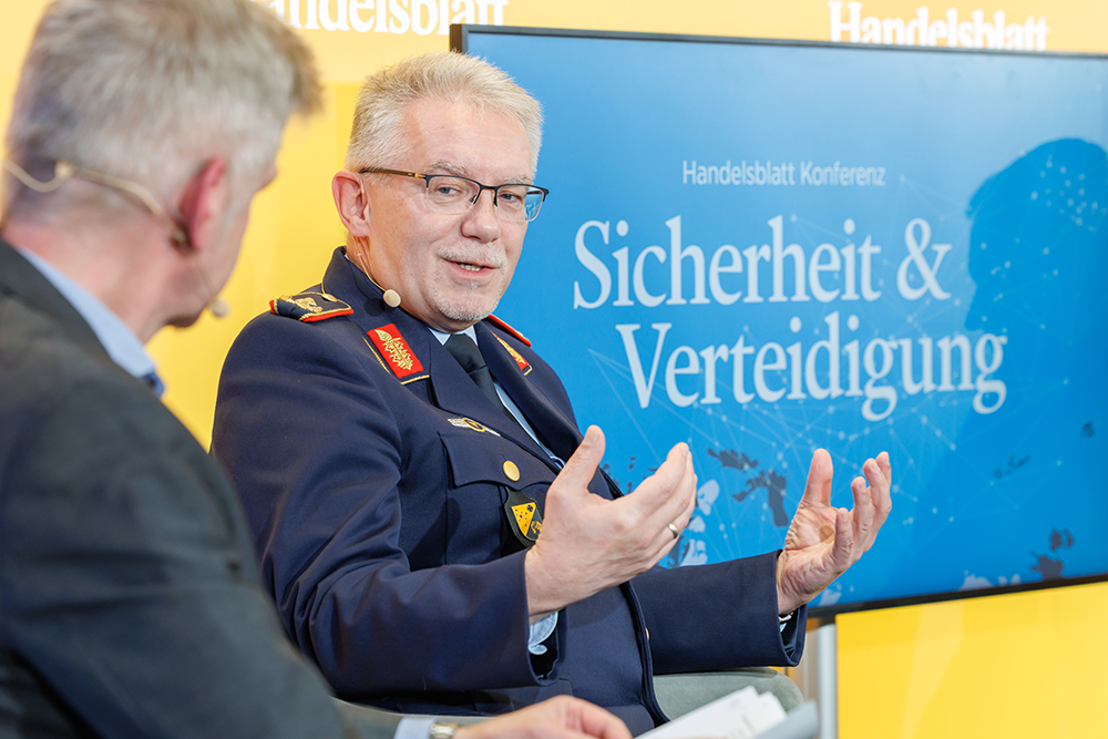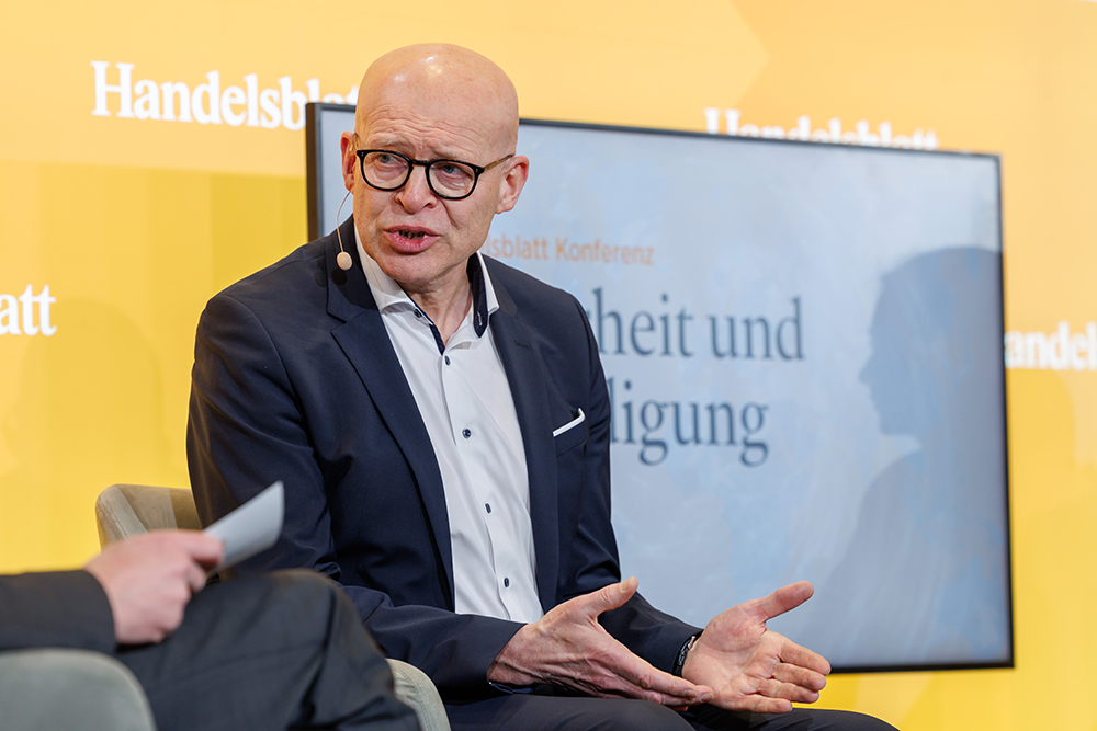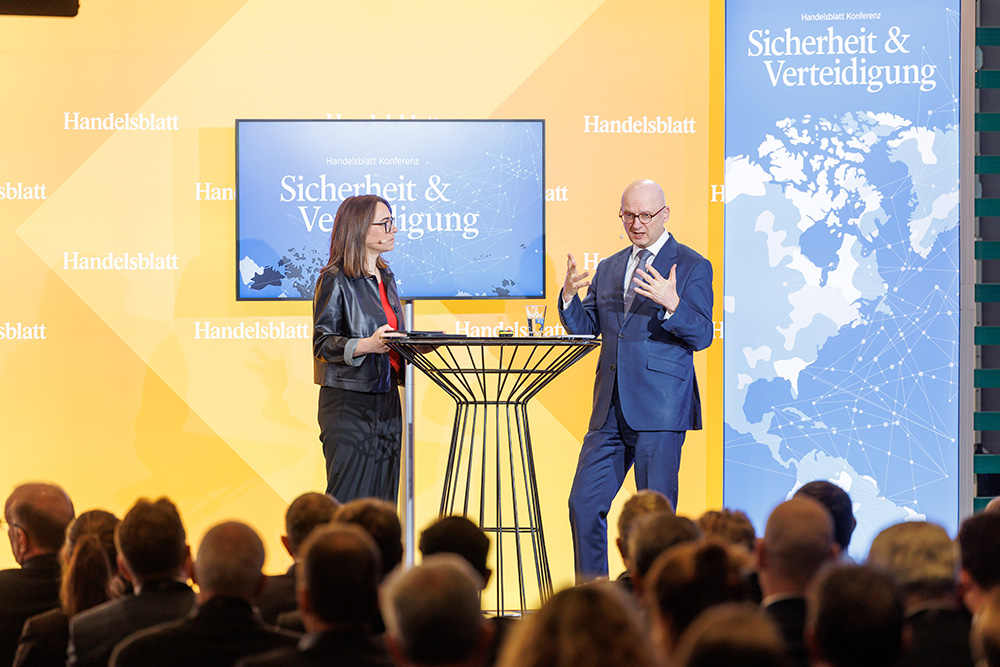 Armin Papperger, CEO – Rheinmetall AG, Präsident BDSV + Martin Knobbe, stellvertretender Chefredakteur – Handelsblatt.