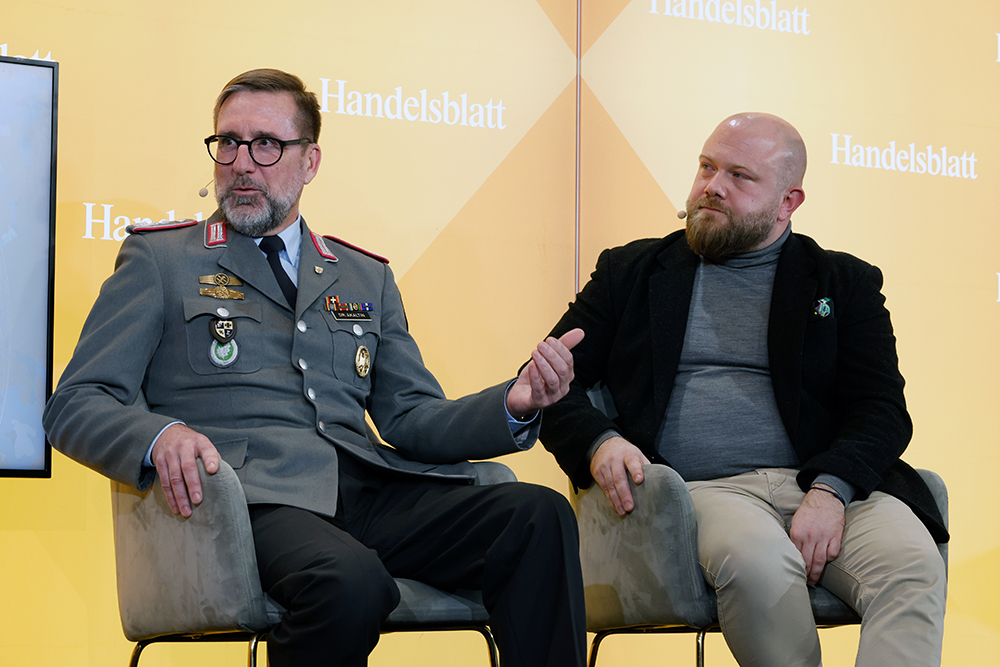 Oberst André Wüstner, Bundesvorsitzender – Deutscher BundeswehrVerband e.V. + Moritz Schönleber, Head of Event Production – Handelsblatt Media Group.