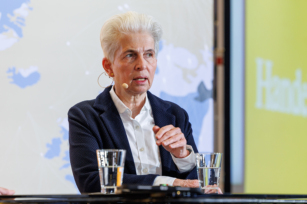 Auf dem Podium von links: Nicole Bastian, Co-Ressortleiterin Podcast, Video & Live – Handelsblatt; Dr Teija Tiilikainen, Director – The European Centre of Excellence for Countering Hybrid Threats.