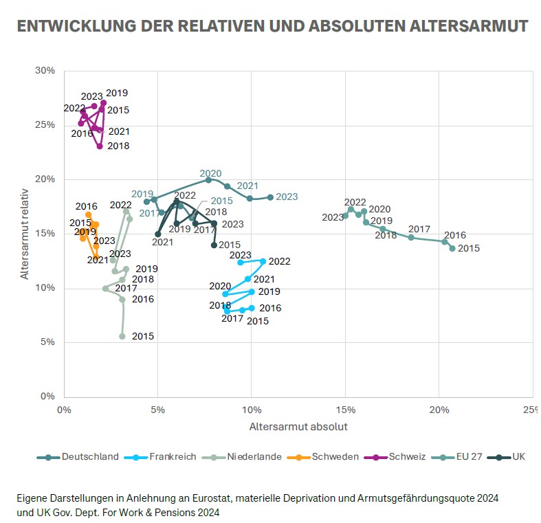 Altersarmut ist in Deutschland kein Randphänomen mehr. Besonders betroffen sind Alleinlebende, Menschen mit unterbrochenen Erwerbsbiografien, Selbständige ohne Pflichtversicherung und Beschäftigte mit geringen Löhnen. Während andere europäische Länder auf Mindestrenten oder steuerfinanzierte Basissicherungen setzen, bleibt Deutschland bei einem komplexen Flickenteppich aus Zuschüssen, Grundsicherung und Teilanrechnungen.