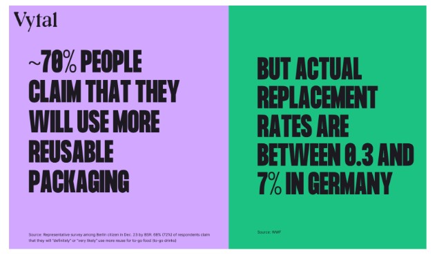 Vytal ist in dieser Logik nicht „Mehrweganbieter“, sondern software- und datengetriebene Infrastruktur: Eine Plattform, die Rückgabe, Tracking, Incentivierung, Clearing und Partnerintegration so digitalisiert, dass Mehrweg für große Organisationen nicht nur möglich – sondern rollout-fähig wird und echte Mehrwerte liefert.