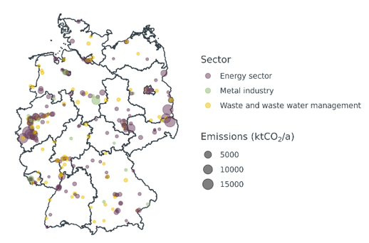 Ausgewählte CO2-Punktquellen in Deutschland (Quelle: Frontier auf Basis öffentlicher Daten)