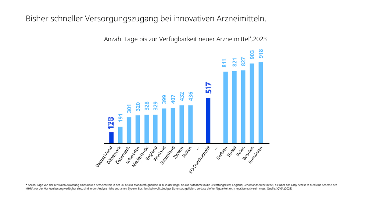Nicht zuletzt durch unser System aus Zusatznutzenbewertung, Preisbildung und Erstattung waren Arzneimittel mit neuen Wirkstoffen hierzulande bisher in Rekordzeit verfügbar. Von der europäischen Zulassung bis zum Einsatz in der Praxis brauchte es rund 130 Tage – deutlich schneller als in Dänemark mit etwa 190 Tagen oder als in Großbritannien und den Niederlanden mit mehr als 300 Tagen. Aber es gibt Reformbedarf. Einerseits bringt das GKV-Finanzstabilisierungsgesetz die nutzenbasierte Preisfindung seit dem vergangenen Jahr ins Wanken. Andererseits schreitet der medizinische Fortschritt immer schneller voran. Das AMNOG hat damit nicht Schritt gehalten: Gerade innovative, lebenswichtige Therapien für Menschen mit chronischen und akuten Erkrankungen benötigen neue Ansätze. Denn sie haben oft eine begründet limitierte Evidenz oder sind einmalige Behandlungen wie bestimmte Gentherapien. Eine Reform des AMNOG und insbesondere eine Rücknahme der kürzlich eingeführten Verschärfungen brauchen diese Therapien dringend. Hier müssen Industrie und Politik wieder gegenseitiges Vertrauen aufbauen.