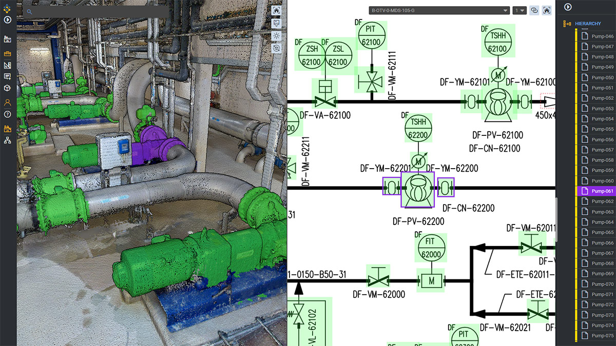 Using patented AI and 3D streaming, Samp’s cloud-based solution connects 3D reality capture with technical data to accelerate asset management, rehabilitation or expansion projects, in days. Users navigating through the workspace have a 360º perspective of real site conditions, alongside with P&IDs and equipment lists. The AI recognises the equipment in the 3D model and helps rapidly tag all items of equipment using identifiers from the engineering documents. The discrepancies between the actual site conditions and the original P&ID, are identified instantly. This solution is suitable for wide range of projects in the municipal water and energy sector, involving both aboveground and buried assets and networks.