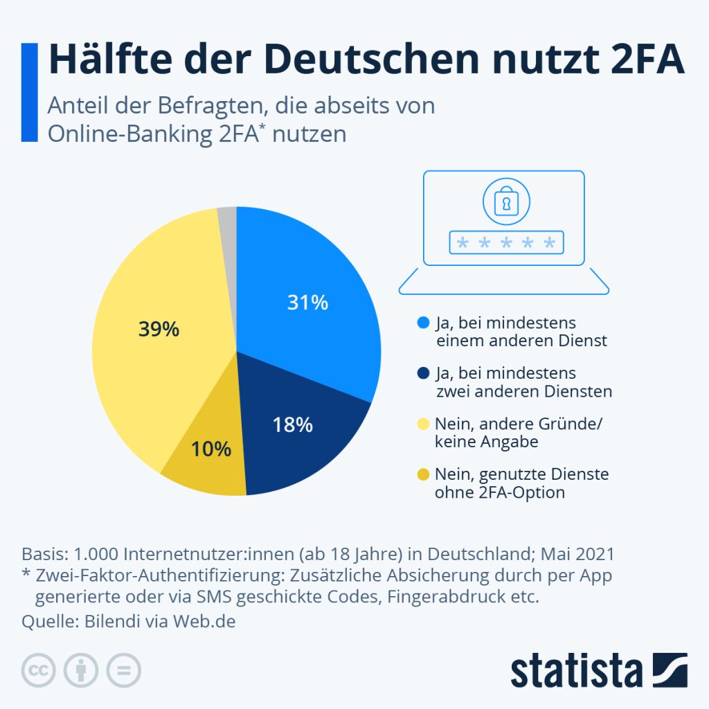 Laut einer Umfrage sind 38 Prozent der Befragten in Deutschland besorgt über die Sicherheit ihrer Daten im Internet und zeigen sich daher vergleichsweise skeptisch bezüglich des Missbrauchs ihrer Daten. Etwa 50 Prozent nutzen die Zwei-Faktor-Authentifizierung (2FA). Die Entscheidung von Twitter, 2FA per SMS nur noch Abonnent:innen zugänglich zu machen, dürfte in Deutschland daher auf Skepsis stoßen.