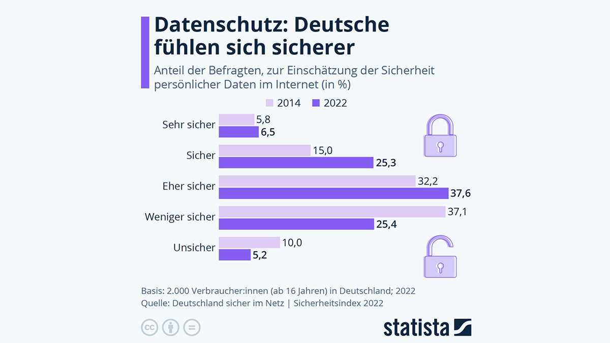 Statistik zum Datenschutz: Deutsche fühlen sich beim Datenschutz sicher, doch Risiken nehmen zu