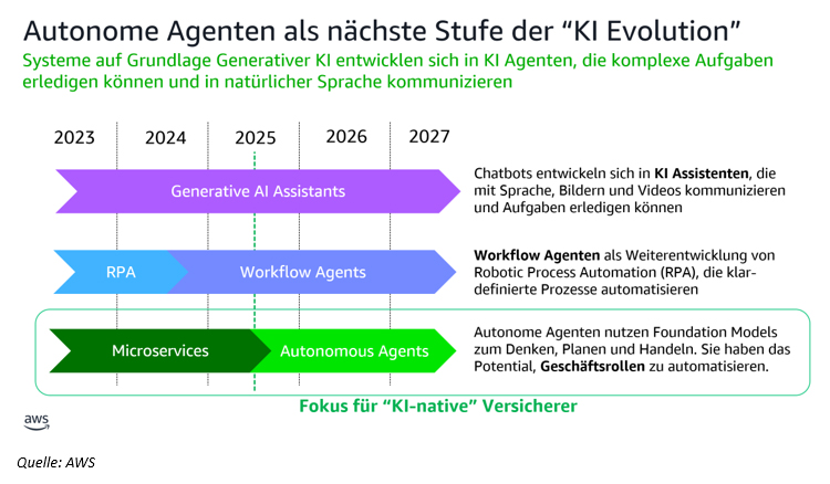 Die Versicherungsbranche durchläuft einen tiefgreifenden Wandel. Was vor zwei Jahren noch als futuristische Vision galt, ist heute Realität: Generative Künstliche Intelligenz (KI) transformiert Arbeitsabläufe, Kundenbetreuung und Geschäftsprozesse. Es zeichnet sich aber bereits die nächste Evolutionsstufe ab – agentische KI, die eigenständig handelt.