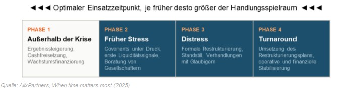 Gerade jetzt verspüren viele Unternehmen Druck. In Deutschland wurden 2025 rund 24.064 Unternehmensinsolvenzen verzeichnet. Finanzierungen werden komplexer, Stakeholder-Strukturen dichter, Entscheidungsfenster kürzer. Viele Organisationen sind darauf strukturell nicht vorbereitet. Zusätzliche Führungskapazität aufzubauen braucht Zeit und genau diese fehlt in kritischen Situationen.