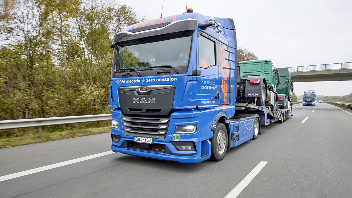 Die Palette an Elektro-Löwen ist heute bereits sehr umfangreich: Sie reicht von 12 bis 50 Tonnen und bildet vom Müllsammler bis hin zum Langstrecken-Truck alles ab. Die so genannte Ultra-Lowliner-Sattelzugmaschine von MAN ist mit ihrer Aufsattelhöhe von nur 950 mm mit 3,75 Meter Radstand einzigartig auf dem Markt. Damit sind auch vollelektrische Transporte mit drei Metern Innenladehöhe möglich.